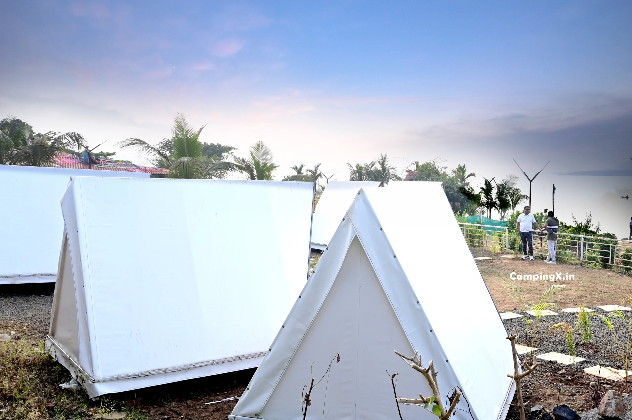 Standard Triangle Camping at Pawna Lake offers the perfect blend of comfort and adventure for families, friends, and couples. Located amidst the scenic Sahyadri hills and overlooking the serene waters of Pawna Lake, our tents provide a cozy tent stay under the starry sky. Each tent is equipped with comfortable mattresses, blankets, and pillows, ensuring a relaxing and safe experience close to nature.